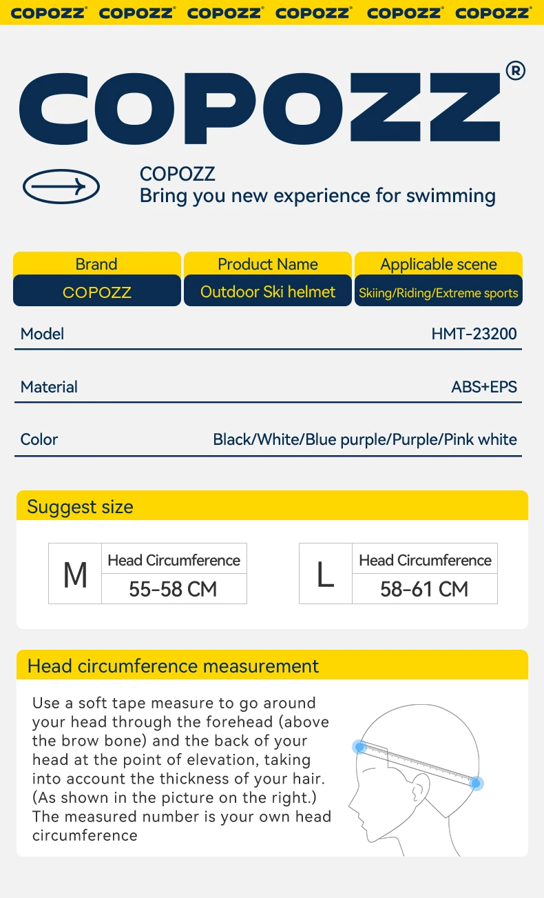 COPOZZ Certificated Ski Helmet Husband Integrally-Molded Snowboard Helmet with Magnetic Bukcle Motorcycle Snow Men Women Adult