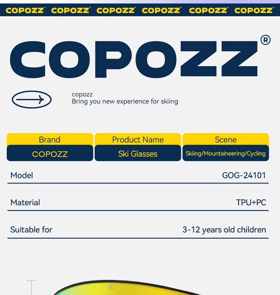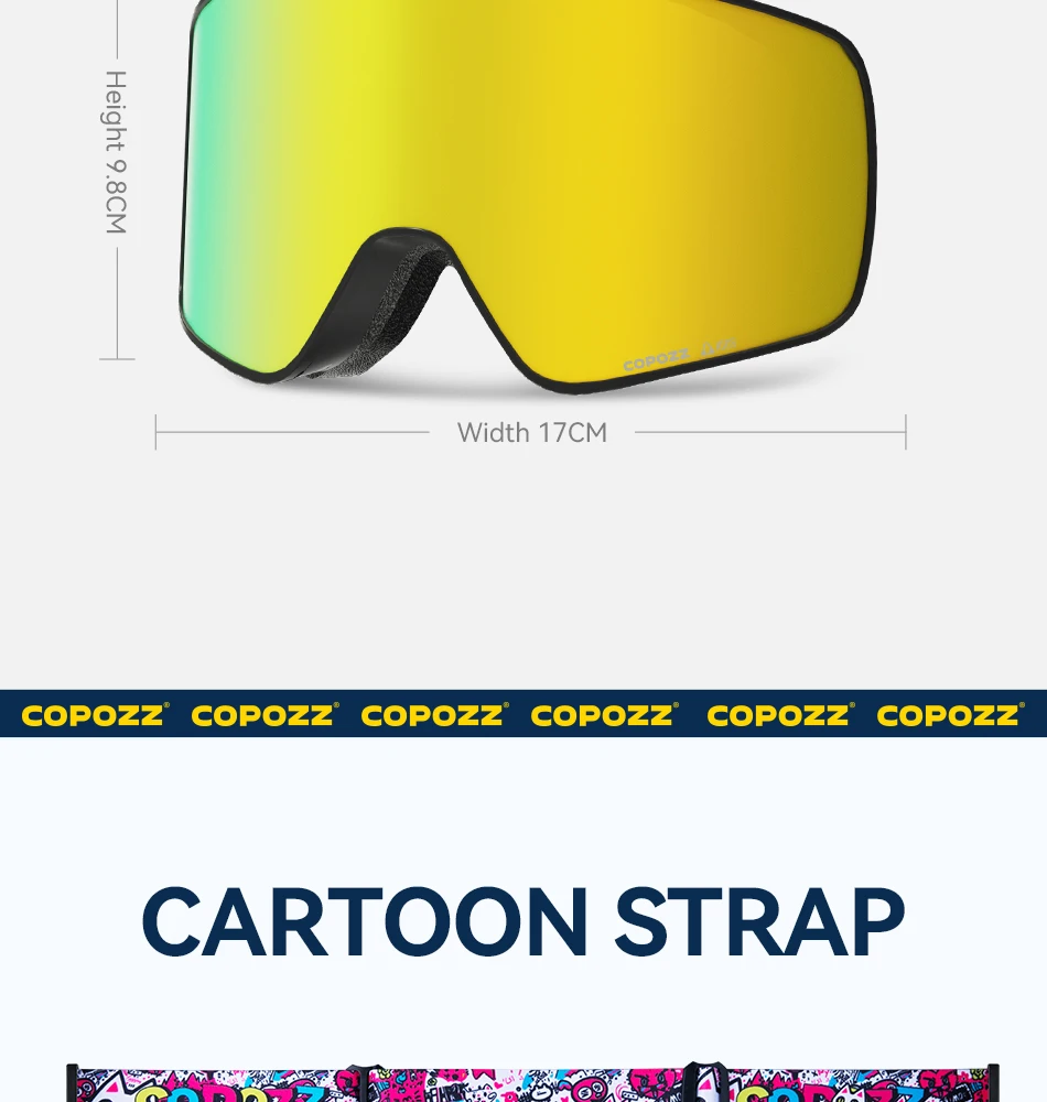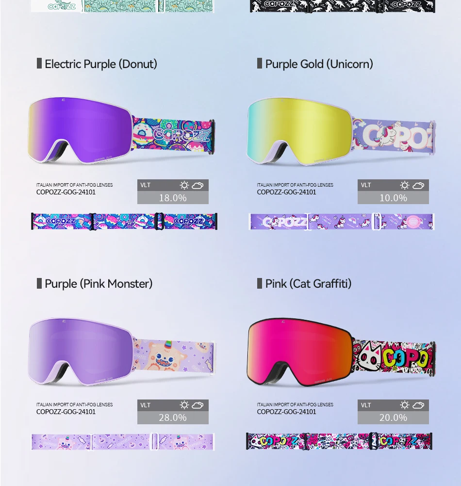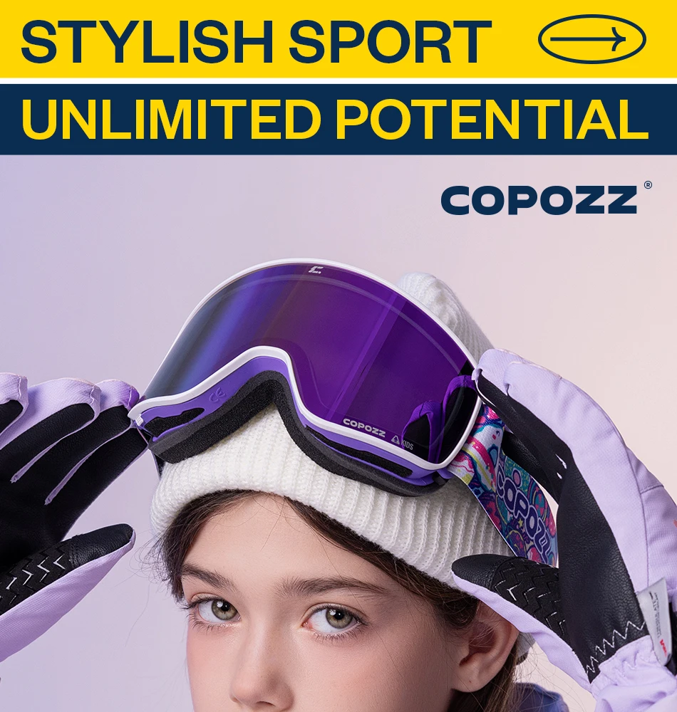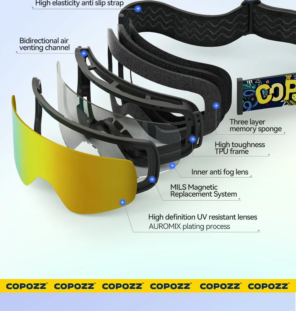 COPOZZ Magnetic Kids Ski Goggles for Children UV400 Anti-fog Mask Glasses Girls Boys Snowboard Goggles with Personalized Straps