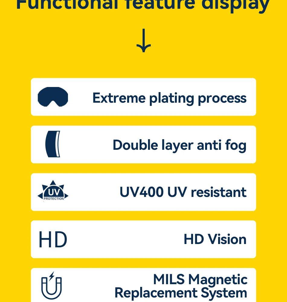 About Lens: Can be replaced within 2 seconds, magnetic, 100% UV protection, anti-fog and anti-scratch, mirror coating